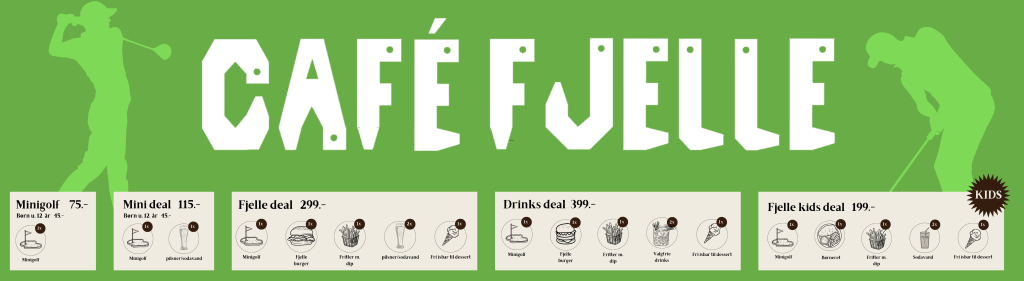 Café Fjelles Minigolf baner er såkaldt amerikansk minigolf! Det betyder at samtlige baner er bygget til at spillere på alle niveauer, kan få en god oplevelse. Det vil sige at både professionelle og nye minigolfspillere vil få noget ud af oplevelsen. Banen består af 19 huller og banens officielle par er 57 slag.